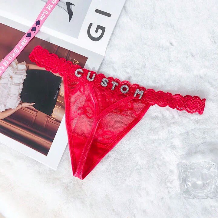Nuestra tanga personalizada con cadenas doradas y letras únicas resalta tus curvas con sensualidad y elegancia.